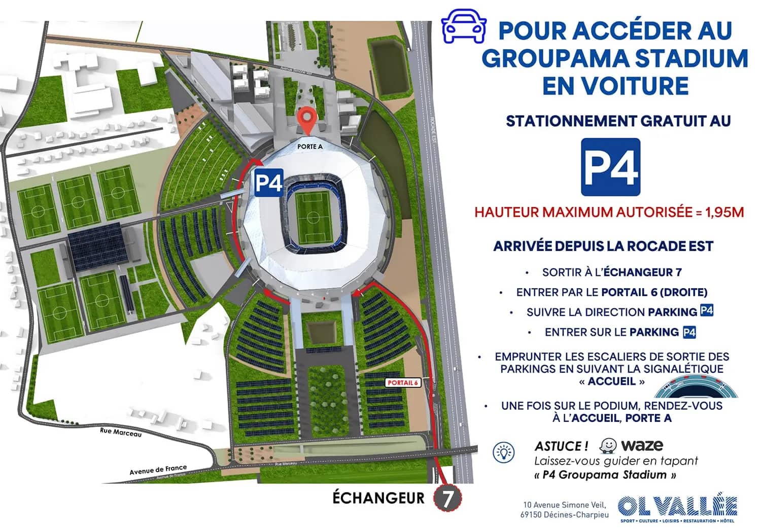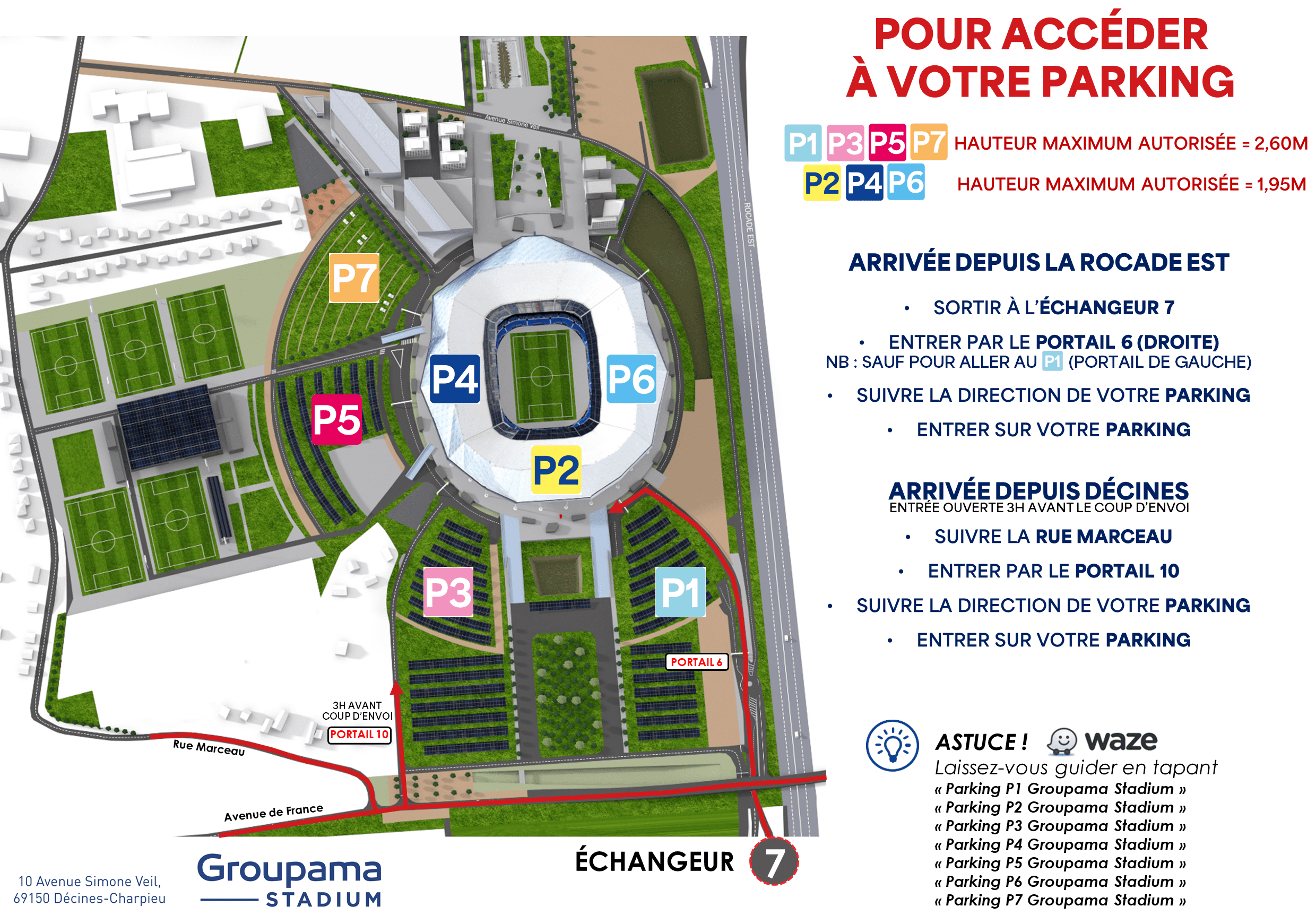 Astuce : les parkings au stade étant souvent complets à l’approche du match, pensez à réserver dès que possible.
