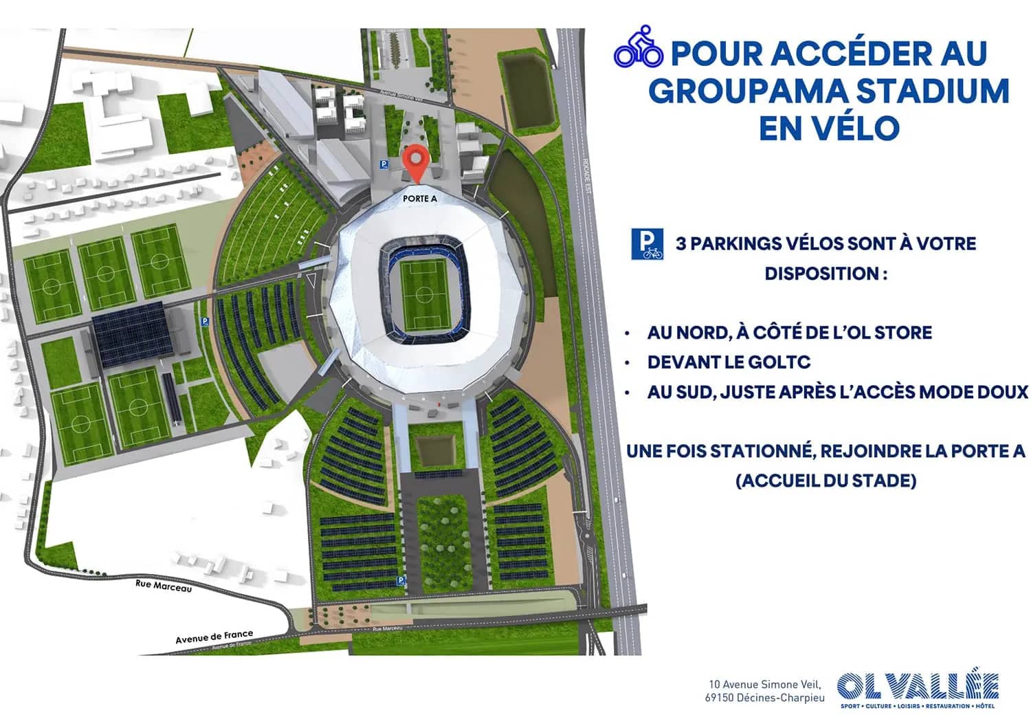Un parking vélo est à votre disposition gratuitement, sous la rampe nord-ouest du stade.
